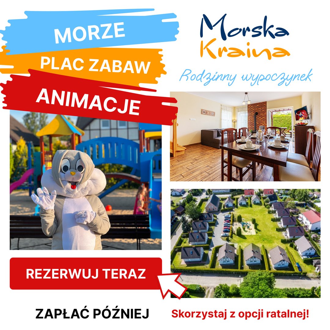 Morska Kraina Białogóra to kompleks 20 murowanych domów nad morzem z centralnie umiejscowionym dużym placem zabaw i własnym parkingiem. U nas poczujesz się komfortowo i swobodnie za sprawą w pełni wyposażonych domów o powierzchni aż 75 m2 z darmowym dostępem do WiFi - to idealne miejsce na wakacyjny wypoczynek dla całej rodziny. Oprócz wspomnianego wcześniej placu zabaw organizujemy w sezonie interesujące animacje dla dzieci. Nasz obiekt jest przyjazny dzieciom - bezpłatnie udostępniamy łóżeczka turystyczne, krzesełka do karmienia, wanienki, podesty. Teren jest zamknięty i monitorowany. Poza ośrodkiem czeka na Państwa urokliwy krajobraz Białogóry - malownicza, niezatłoczona plaża, czyste morze, trasy rowerowe oraz leśne ścieżki spacerowe.